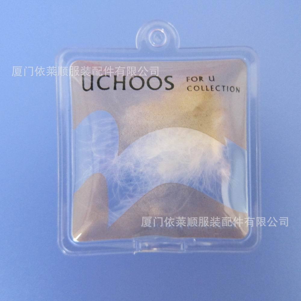 羽絨標,又叫充氣標、充絨標,有的充入的不是羽絨而是棉花,這種叫充棉標。羽絨標的原料有羽絨和PVC,是將羽絨放入兩層PVC之間,把PVC經過高頻電壓做出形狀再充入空氣制作而成的商標,主要應用于羽絨服、羊毛衫、羽絨被、蠶絲被、蠶絲衣等服裝紡織行業。
