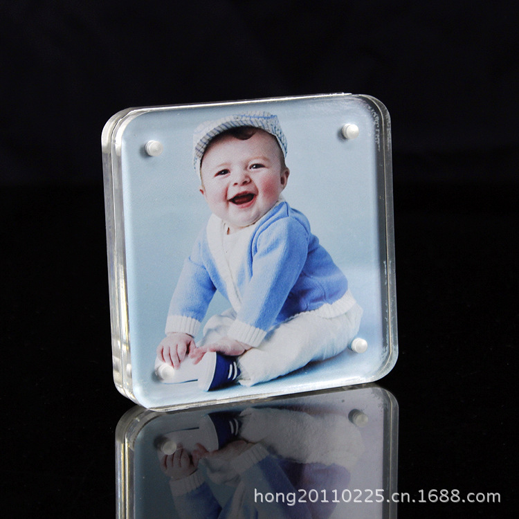 特點:透明度高、通透性強,兼具玻璃的亮度和塑料的韌性。比水晶輕,水晶般的質感和尊貴,放在桌面上為您增添時尚元素,立顯不凡品位!可做多功能展示架,可放宣傳彩頁、結婚照、相片、海報夾等!四角磁鐵,可隨意更換圖片.