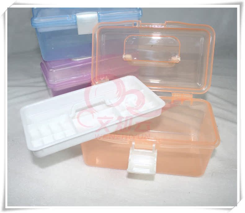 品 名: 中號號美術(shù)工具箱規(guī) 格: 25.2CM*16.5CM*14.1CM(長度*寬度*厚處尺寸,為手工測量,存在誤差)材 質(zhì): 透明塑料使用說明: