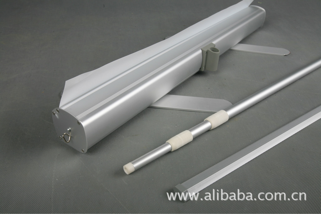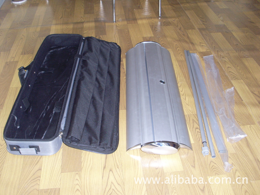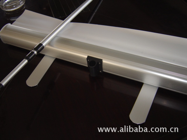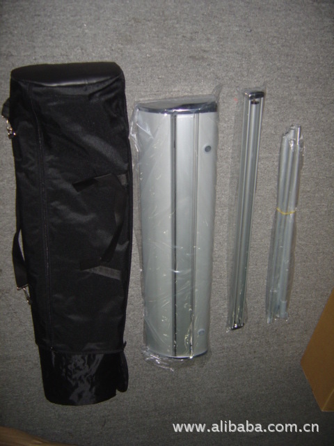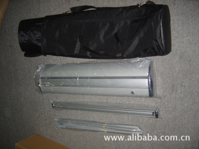 管間的緊帶會自動將它們伸直-->然后插入后座-->拉伸畫面,一切就這么簡單安裝完成一幅完整的廣告只需30秒!“易拉寶”又叫易拉得,是做活動時用的一種廣告宣傳品。易拉寶的底部有一個卷筒,內有彈簧,會將整張畫面卷回卷筒內。打開易拉寶的時候,"/>
