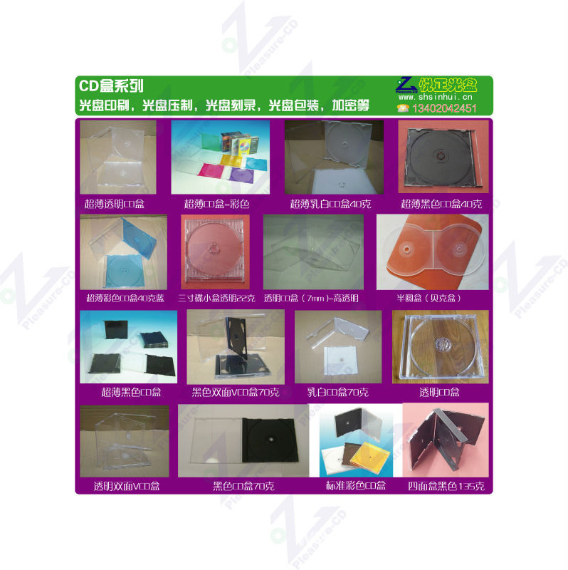 提供CD開(kāi)窗紙袋、無(wú)紡布袋、超薄盒、半圓盒、各種碟片包裝。