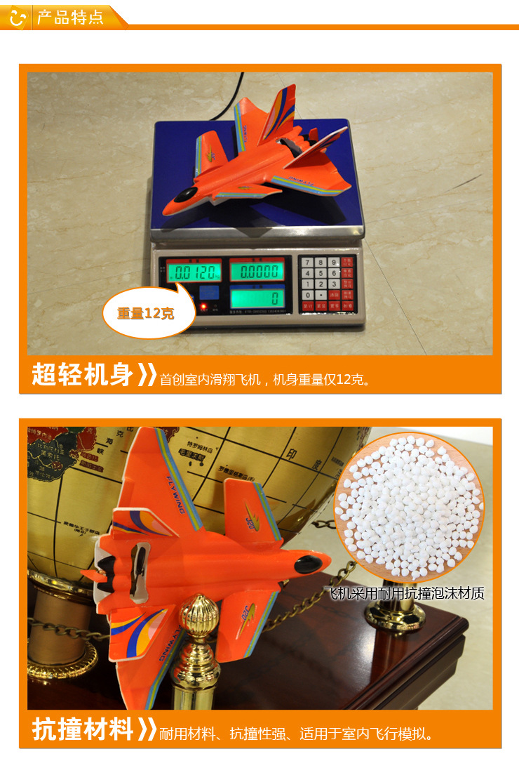 產品簡介:重量輕,結構簡單、易于操作、有良好的低速性、適合在室內操作、耐沖擊性好、不易損壞、飛行穩定、轉向靈活,是初學者練習飛行的機型。