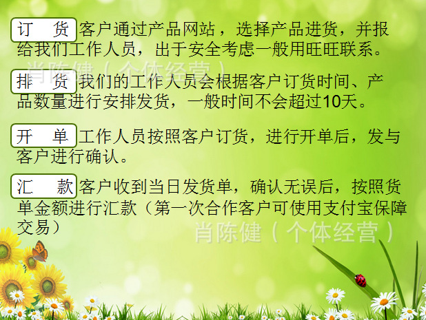 在您支付貨款后請務必聯系我們,通知貨款已經匯出。