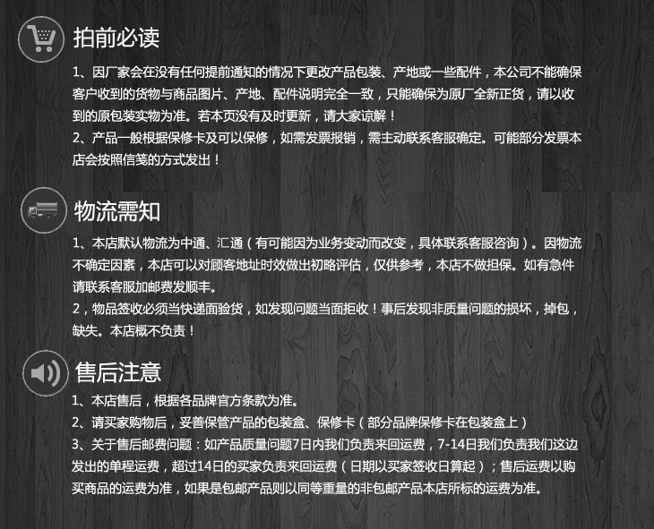 注:本店所有產品默認送貨公司為中通/匯通快遞,快遞到不了的地方再查看其他快遞公司,快遞到不了的地方采用EMS(需要聯系客服補差價)。