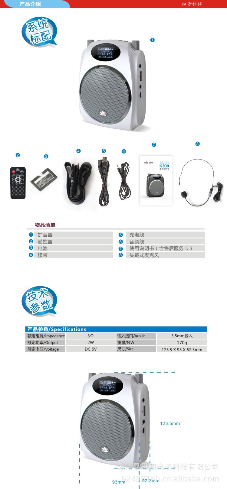 正品K300郎琴多功能擴音器音箱便攜音響立體聲教學腰掛領夾 話筒