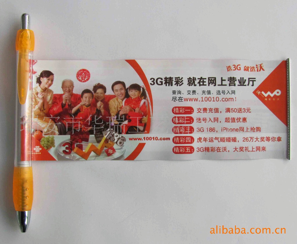 優(yōu)質(zhì)的筆芯讓您在書(shū)寫(xiě)時(shí)更加流暢。筆芯顏色,性能,均可根據(jù)您的要求所搭配(如:油性蘭色筆芯,中性黑色筆芯等)且內(nèi)制彈簧廣告紙可隨心伸縮.筆加廣告為一體。適應(yīng)各界人士的選用。