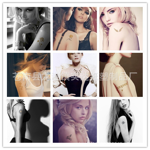 廠家直銷 燙金燙銀紋身貼 金屬紋身貼 奢華時尚個性防水紋身貼