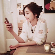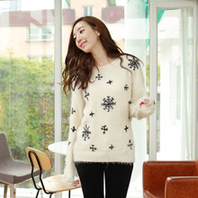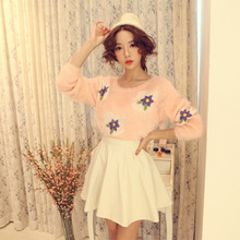 一件代發 韓版優質柔絲毛女裝新款 圓領長袖寬松刺繡花朵毛衣衫57.00