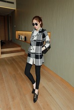 一件代發 秋裝新款2014英倫風女裝大格子寬松中長款針織開衫外套42.00