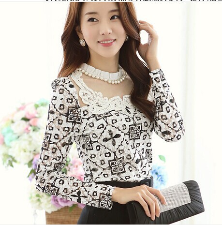 一件代發 2014新款 圓領鏤空花朵長袖純色田園小清新毛針織毛衣57.00