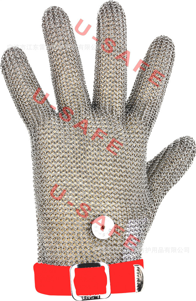 金屬手套具有歐洲CE證書,采用不銹鋼鋼絲手工編織而成.做工精細,穿戴柔軟舒適,絲毫沒有割手的感覺.左右手可以互換穿戴,并且非常容易清理,使用方便輕巧,舒適安全,是肉類加工、刃具制造、服裝裁剪行業的安全防護用品,也是工廠安全生產的必備用品。