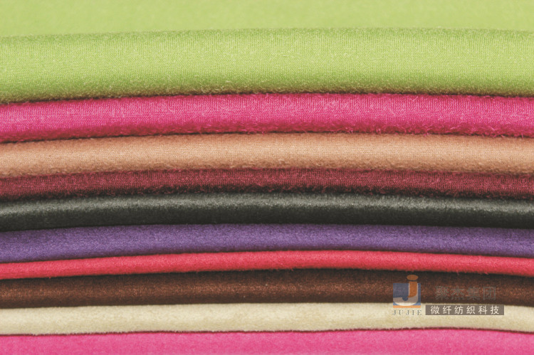 超細纖維海島絲原料與氨綸絲經編制成,通過高科技的染色、開纖、起絨工藝精制合成。