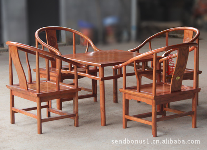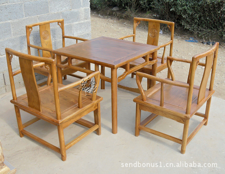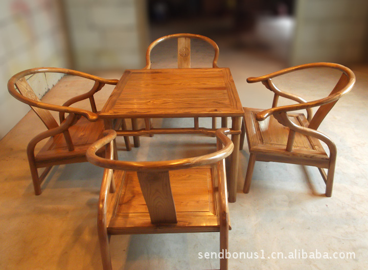雅宜居實木 中式仿古 榆木家具 矮圈椅 方桌 茶桌 五件套