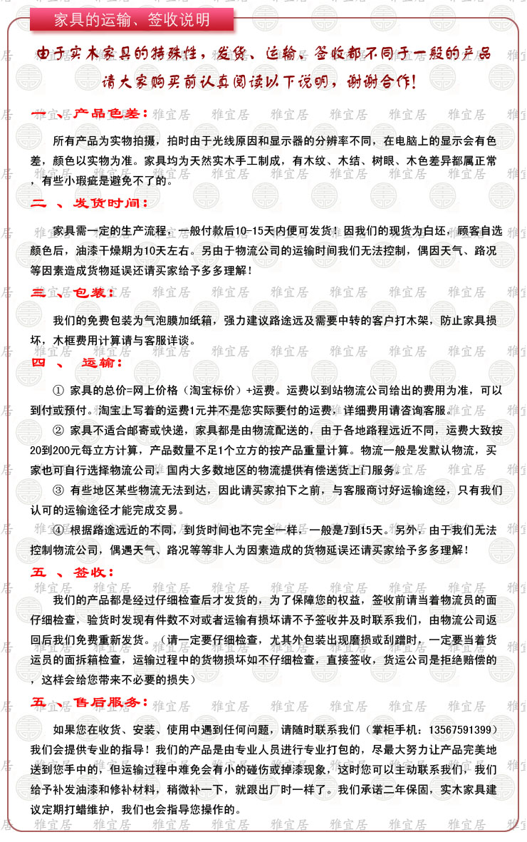因家具體積較大,無法通過快遞或平郵,故所有商品
