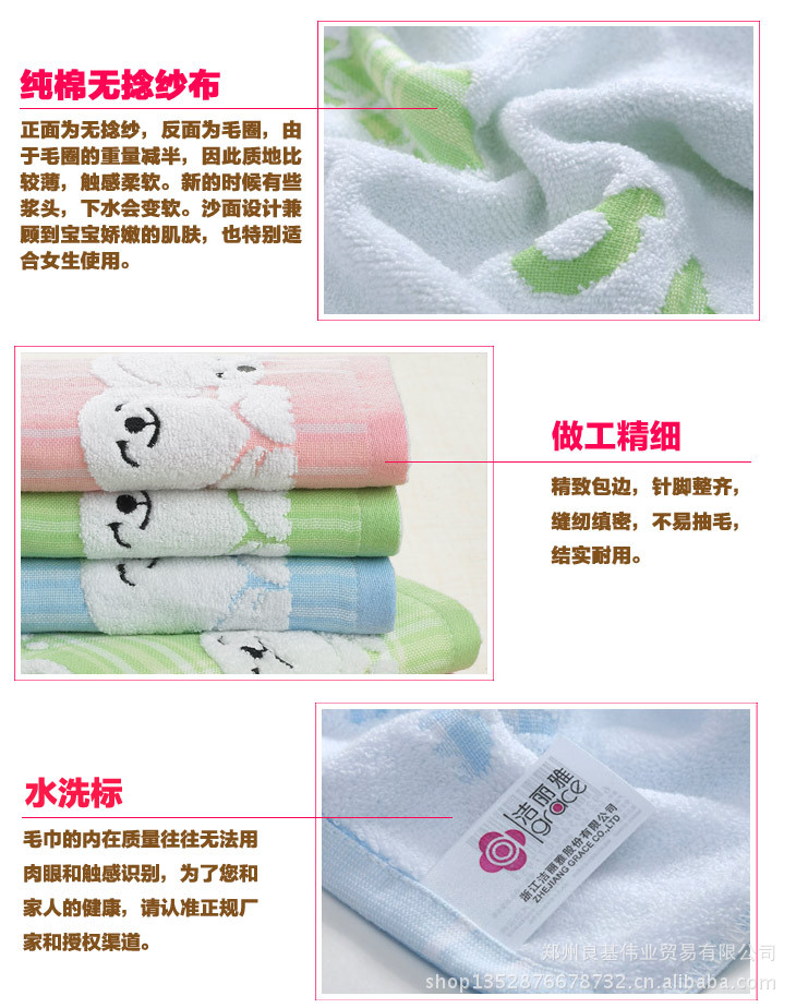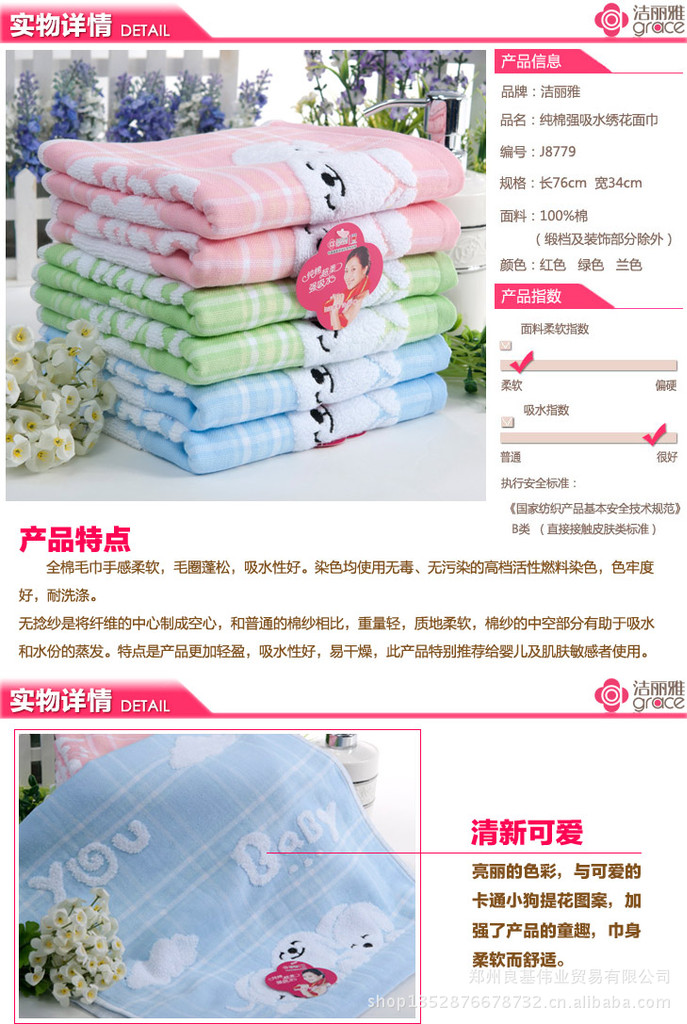 潔麗雅純棉毛巾批發(fā) 8779A強(qiáng)吸水特柔繡花面巾 卡通【一件代發(fā)】