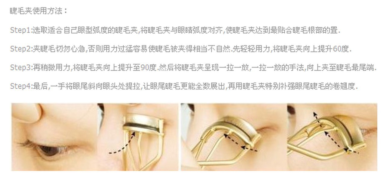 ①本睫毛夾采用優質抗菌樹脂確保安全衛生,含硅油成分。ABS材料比使用PC材料的睫毛夾更經久耐用,不容易老化斷裂褪色,成型更容易,輕松營造卷翹美麗的睫毛。