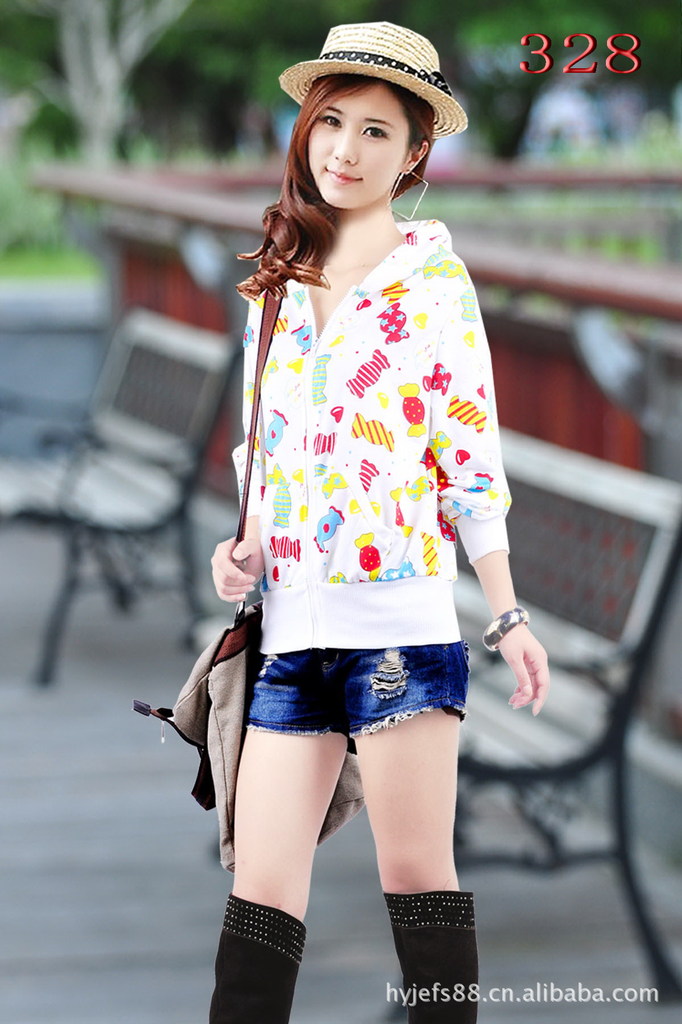 工藝:全面時尚印花,帶拉鏈,連帽,衣袖口及口袋處均有螺紋設計。