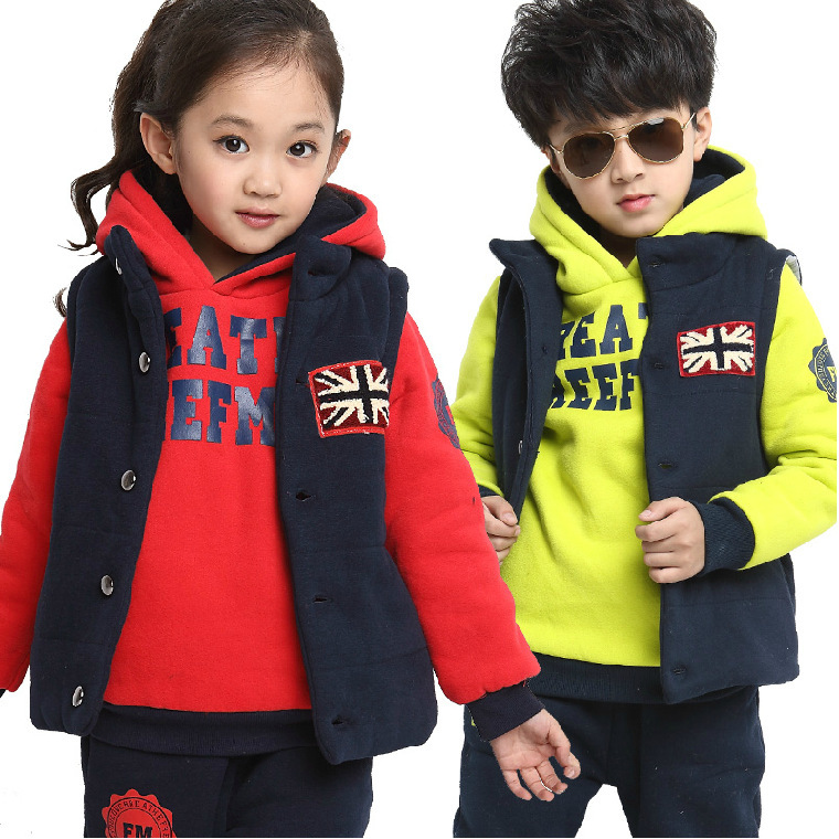 冬款韓版童裝 童套裝男童女童兒童加厚衛(wèi)衣三件套衛(wèi)衣套裝批發(fā)價(jià)¥85.00