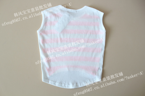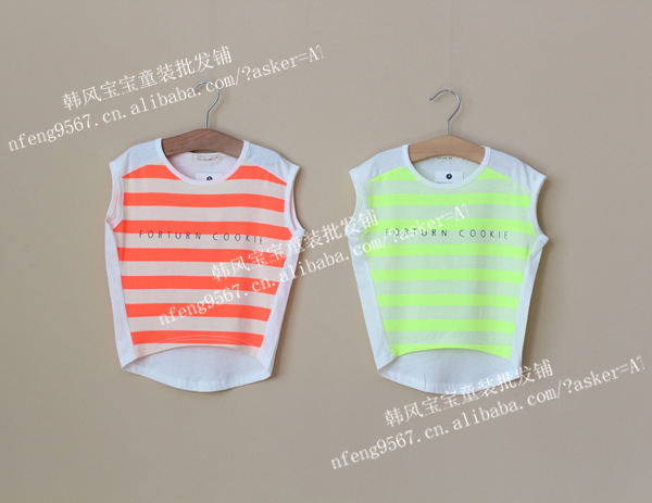 清爽一夏!韓版外貿童裝 熒光色 純棉條紋工字背心 4色