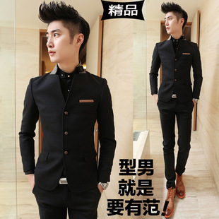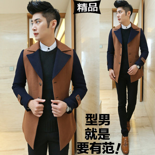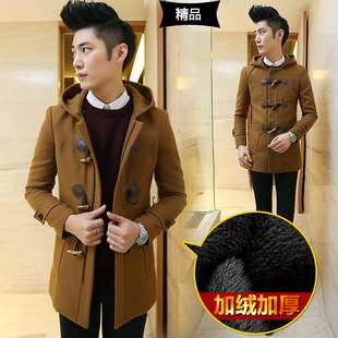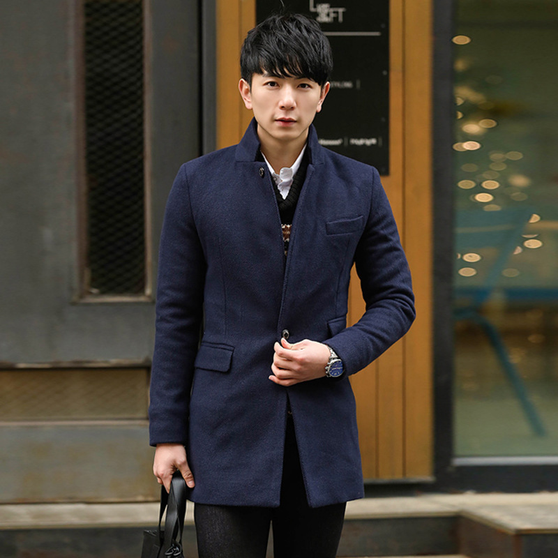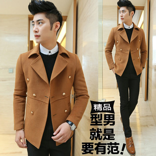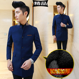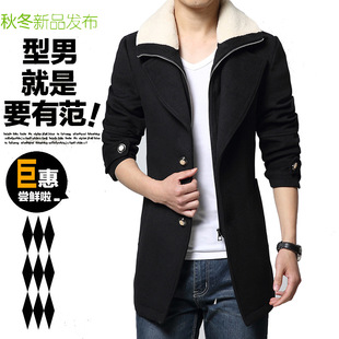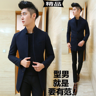¥153.00精品秋冬新款韓版修身男士中長款加厚立領(lǐng)羊毛呢子大衣男式外套