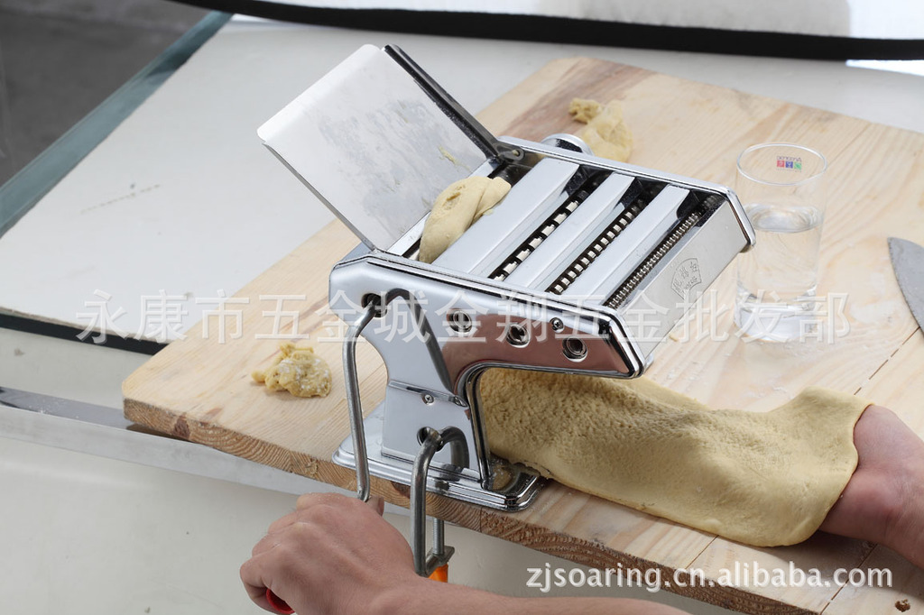該機光潔衛生、操作方便,能壓制寬窄兩種面條及餛飩皮、面葉,用該機壓制的面條同手搟一樣光滑、柔軟、可口好吃。
