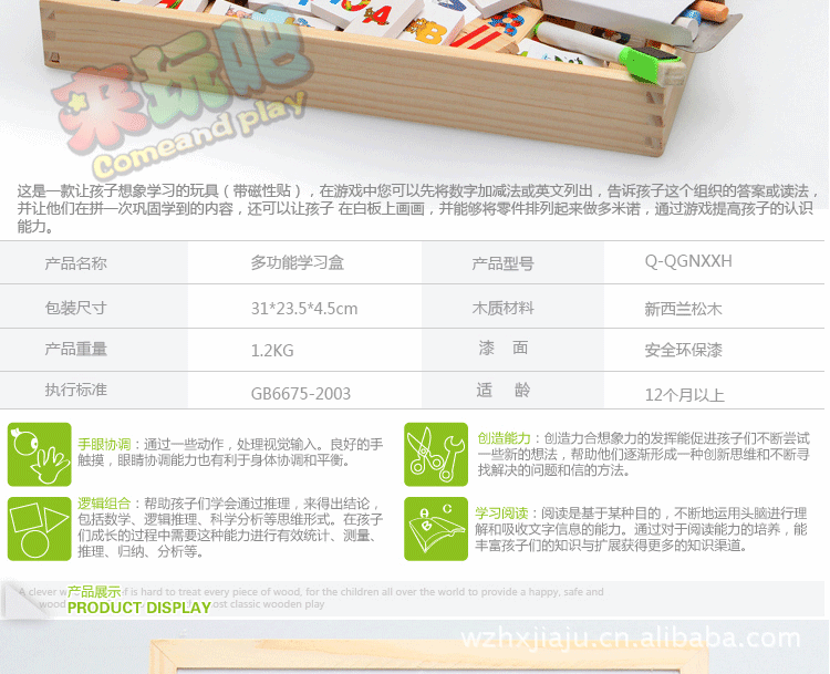 兒童益智玩具 多功能學習盒 磁性積木 早教數(shù)學英文雙面畫板