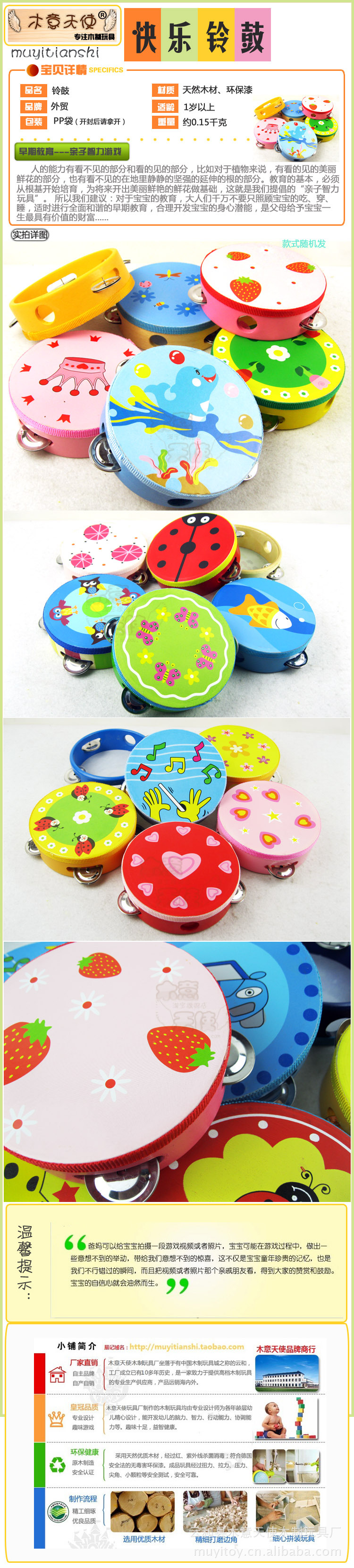 嬰幼兒樂器玩具木制手搖鈴?qiáng)W爾夫音樂感知中號鈴鼓手拍鼓