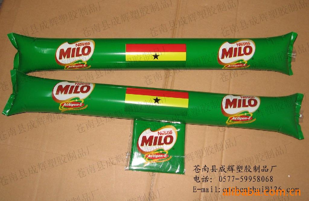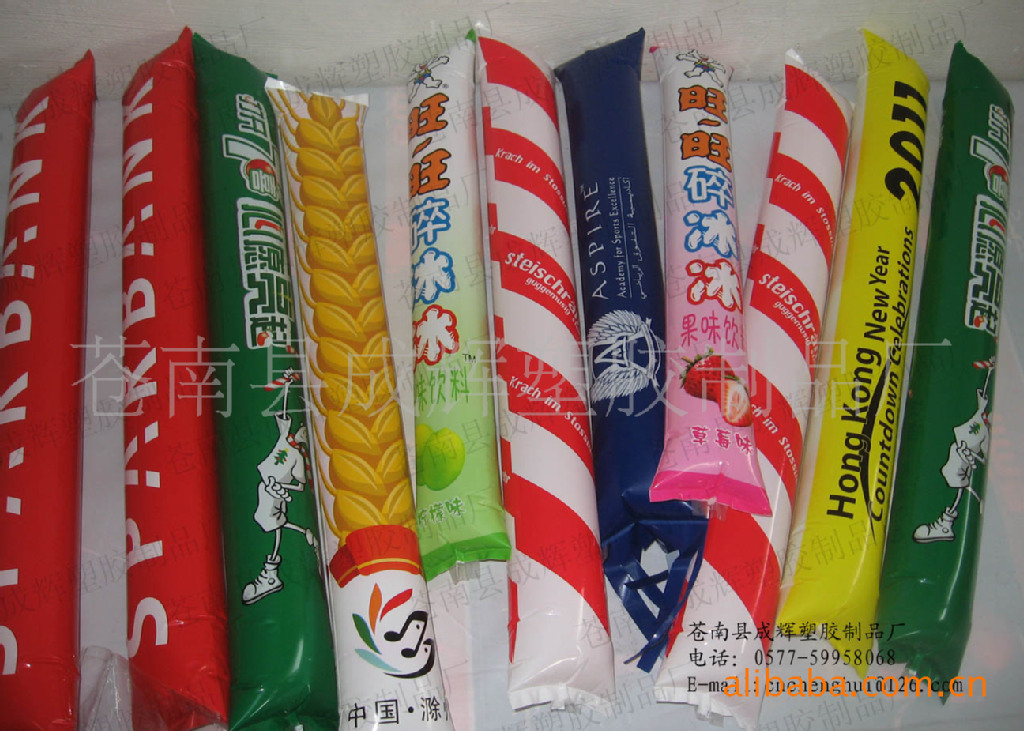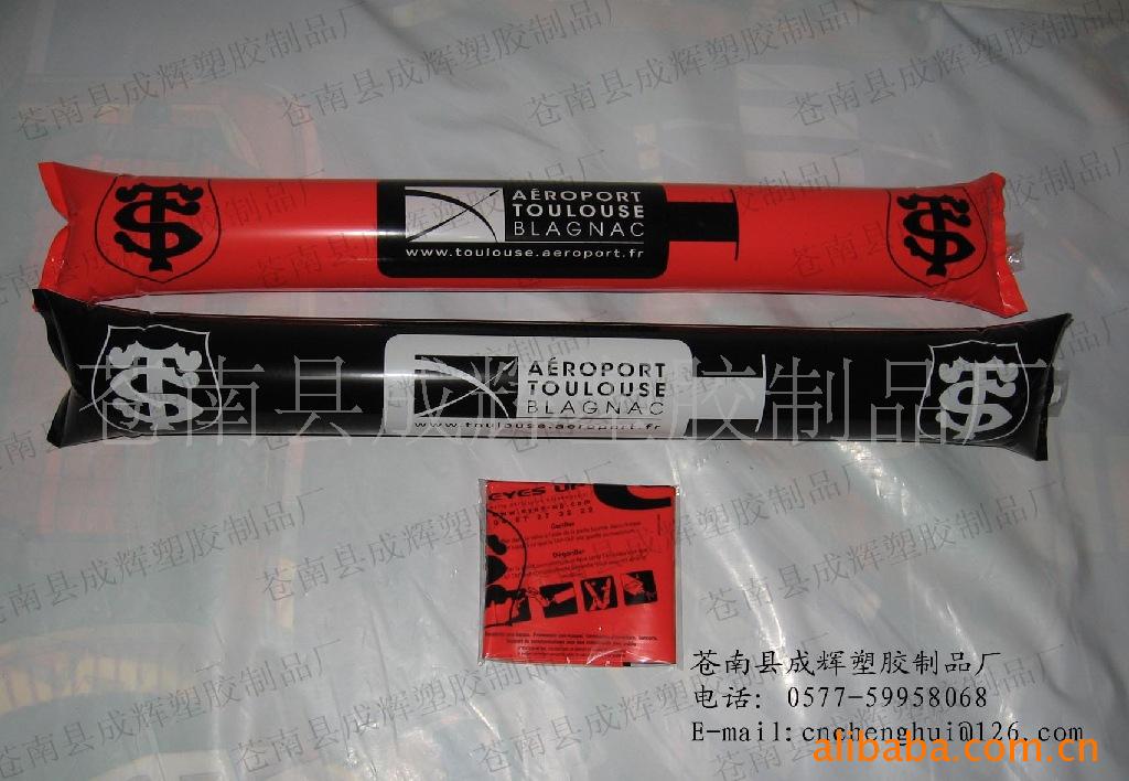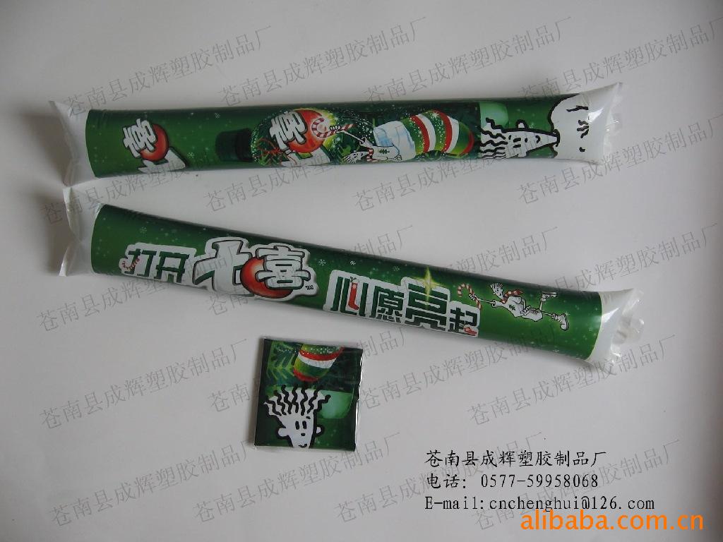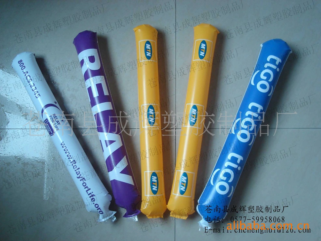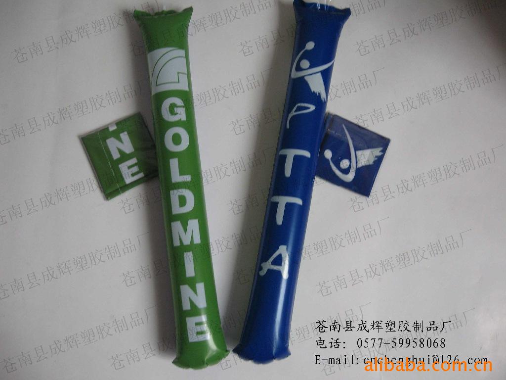 塑料充氣棒由HDPE(高壓膜)材料制成,充氣后互相碰撞能發(fā)出金屬的聲音,制造熱烈氣氛,鼓舞士氣,還可制作成平頭,圓頭,尖頭,帶燈,帶須,等各種形狀,吹氣口充氣后自動封口。