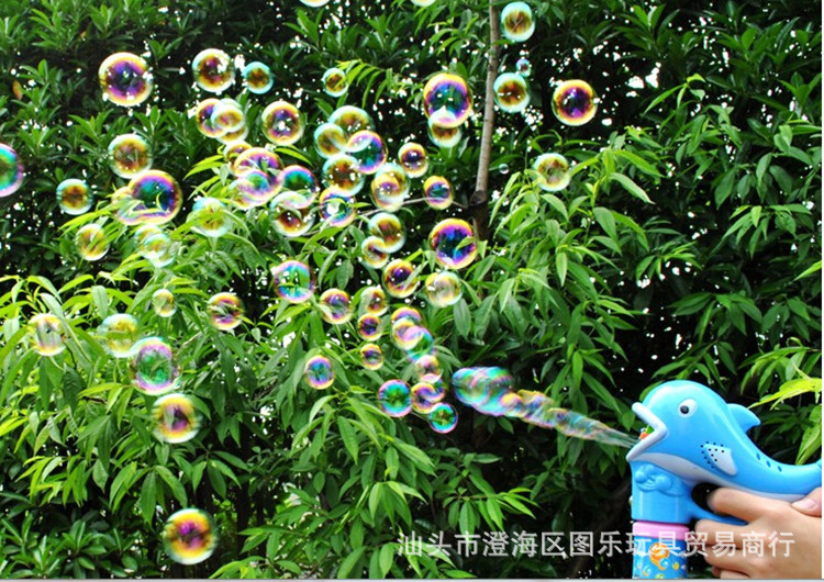 2--新的泡泡槍次使用時要扣動扳機直至泡泡水從噴口處流出才可以,然后再打泡泡就會出來了。