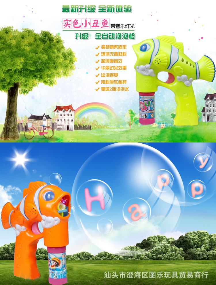 兒童電動泡泡機 全自動音樂燈光實色小丑魚泡泡槍玩具 夏季熱銷