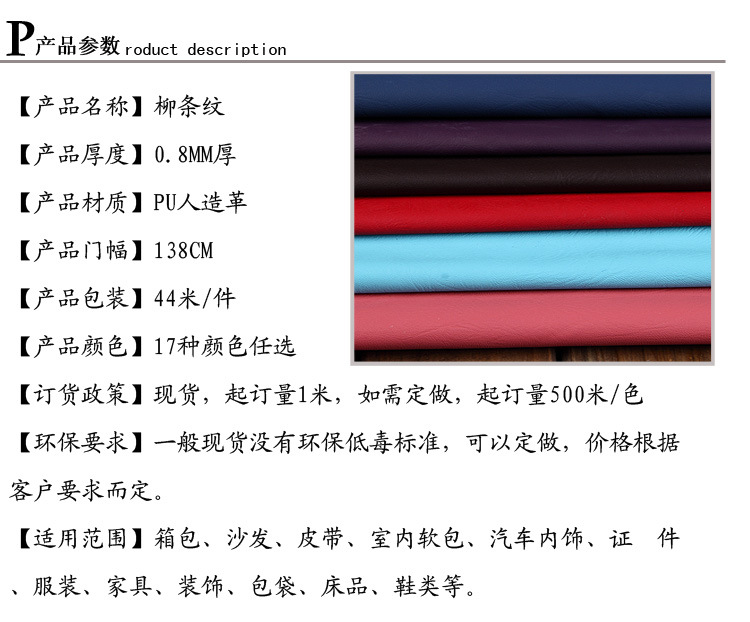 麒翔皮革成立于1999年,公司總部設(shè)立在浙江省義烏市,公司擁有完整科學(xué)的質(zhì)量管理體系。網(wǎng)店布榮貿(mào)易有限公司誠信經(jīng)營(yíng)、服務(wù)周到、在業(yè)界得到廣泛的認(rèn)可。十幾年來本公司專注生產(chǎn)經(jīng)營(yíng)各種PU、PVC、壓花人造革,適用于皮帶、箱包、服裝、證件、商標(biāo)、球類、沙發(fā)、玩具、鞋、工藝品及裝飾。花紋領(lǐng)先獨(dú)特、種類繁多、并配合客戶的產(chǎn)前開發(fā)!常規(guī)貨都有大量現(xiàn)貨批發(fā)!