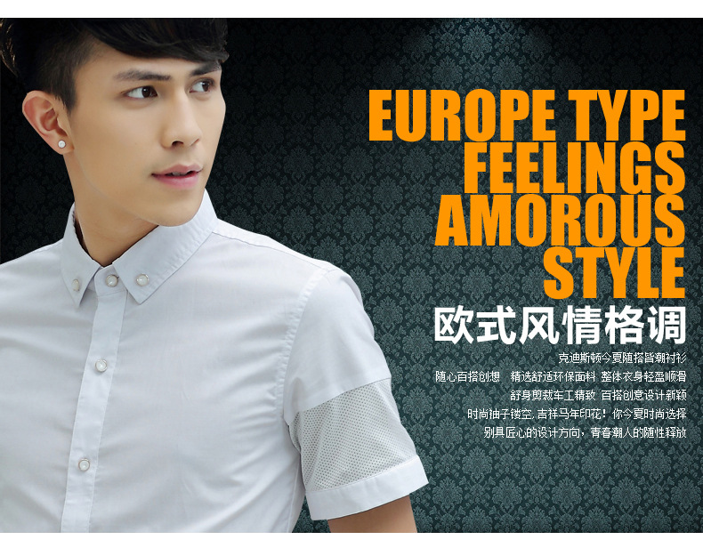 男式襯衫2015男士春裝襯衫薄款修身碎花春款男士襯衣男襯衫RMB¥55