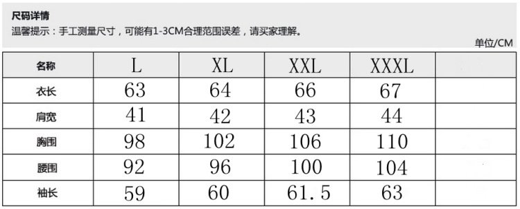 3.不接受退換并不表示衣服質(zhì)量不保證,我們會(huì)加大質(zhì)檢力度,力爭(zhēng)做到問題產(chǎn)品不出廠,不裝包,不銷售,有喜歡本司寶貝的可以提前收藏寶貝,放假期間只接單不發(fā)貨的,等本司上班后,我們會(huì)在48小時(shí)內(nèi)發(fā)貨。