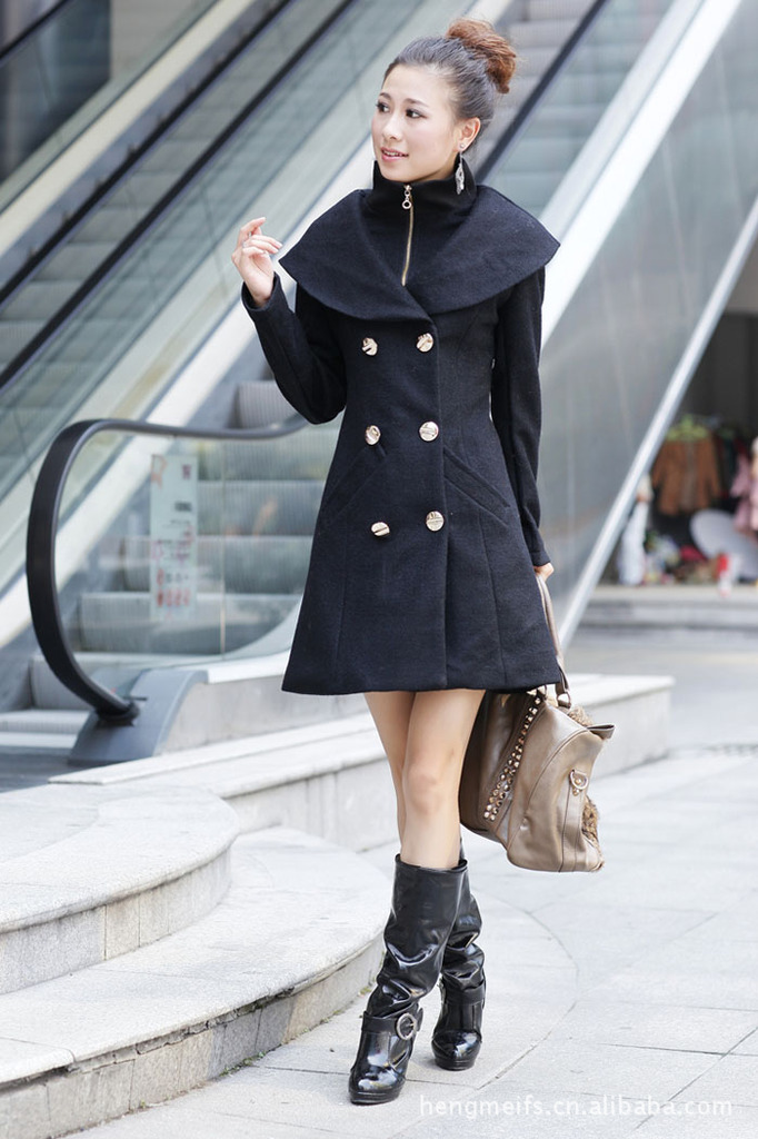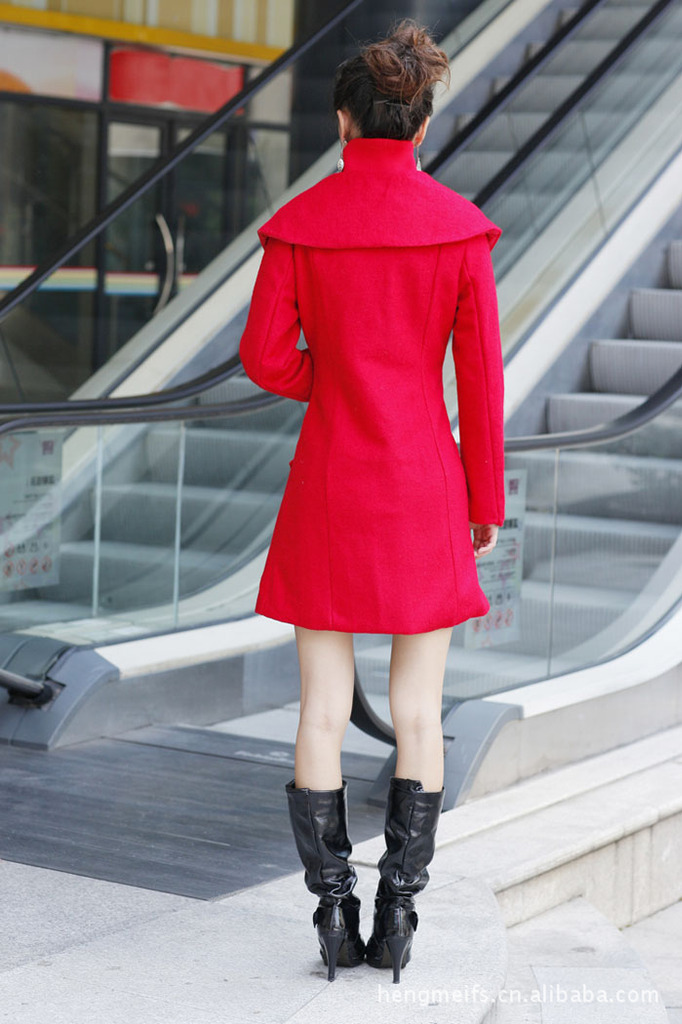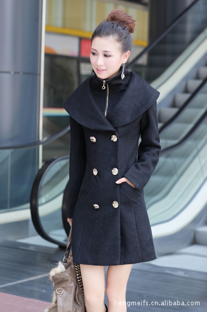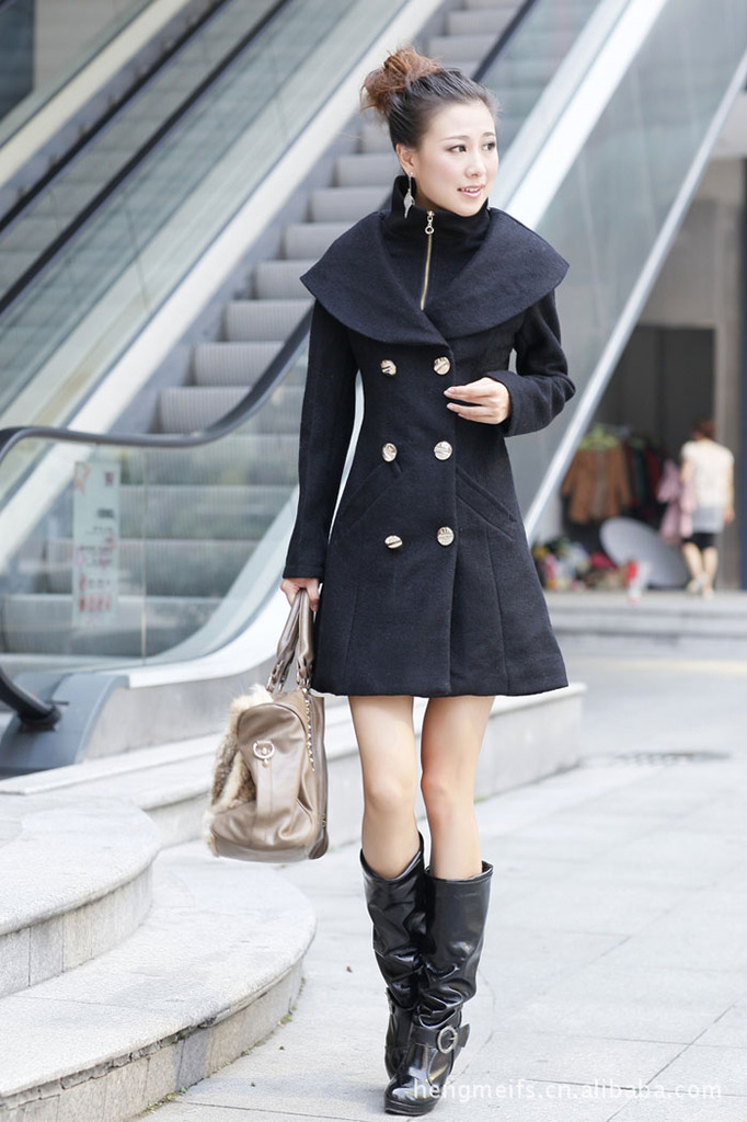 2011冬裝大碼外套,韓版立領假兩件套修身毛呢大衣 淘寶網店代理