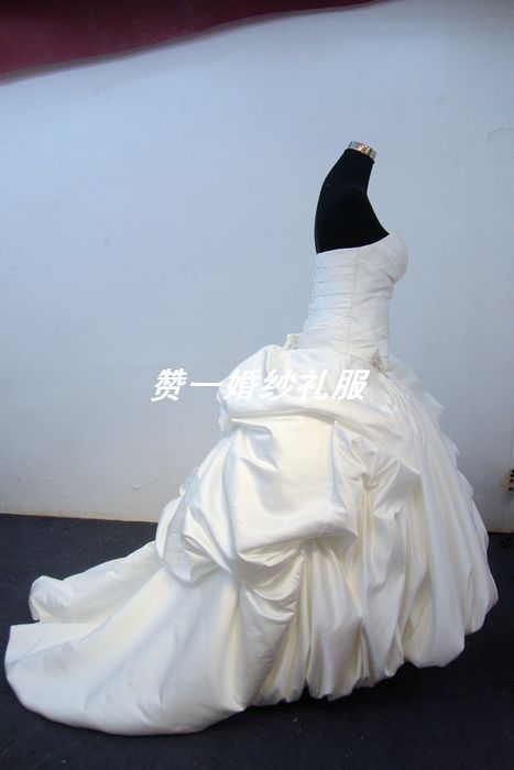 2012新款抹胸褶皺蛋糕式中拖新娘婚紗禮服細節實拍