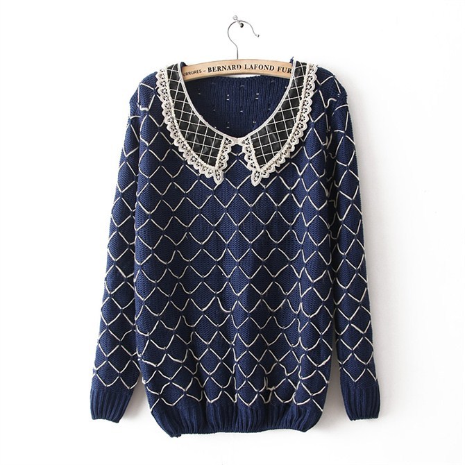 D79-14-012 歐美新款格子領(lǐng)套頭毛衣