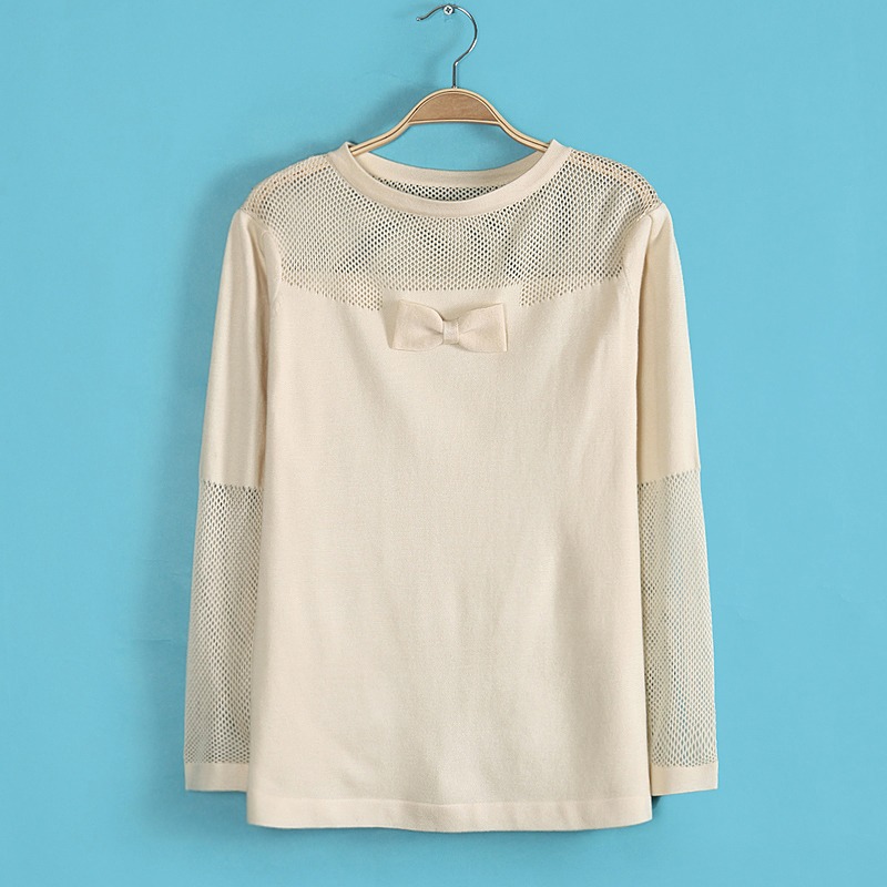 D107-15-066 F.M.P歐美新款領(lǐng)結(jié)鏤空拼接休閑百搭套頭 針織衫