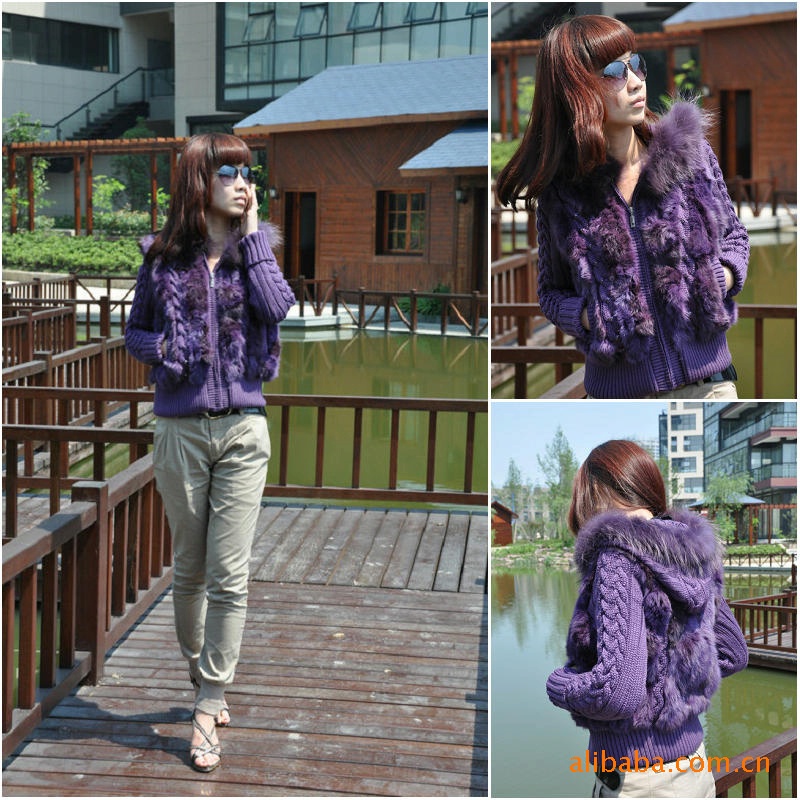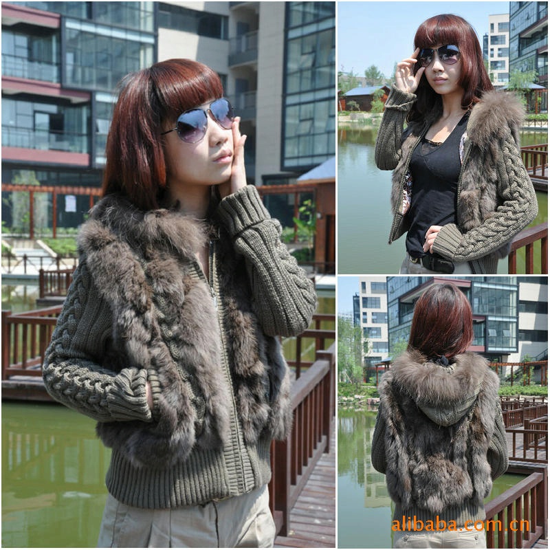 廠家直銷兔毛加毛線上衣外套裘皮服裝皮草