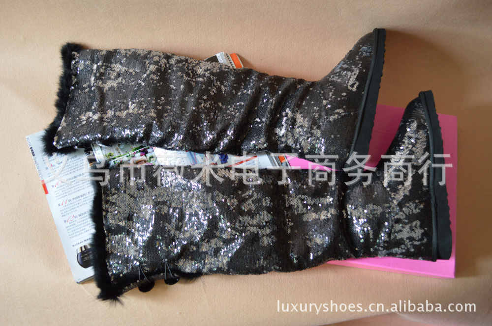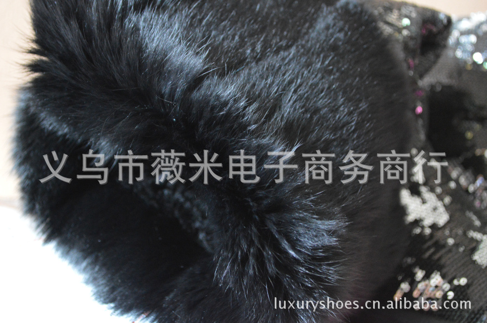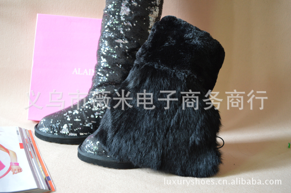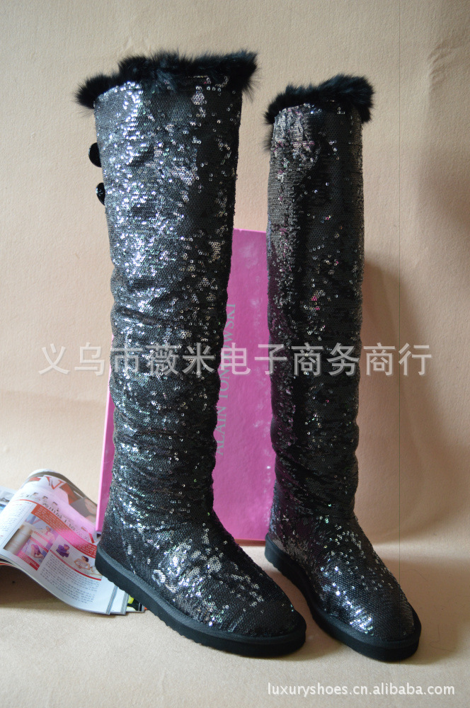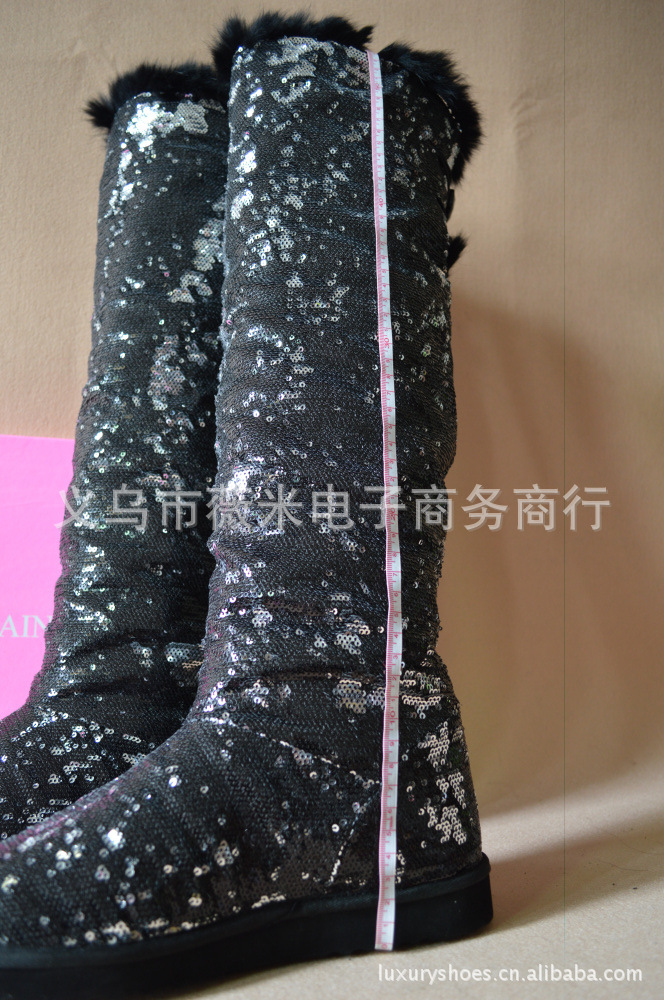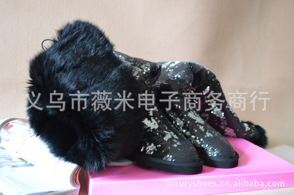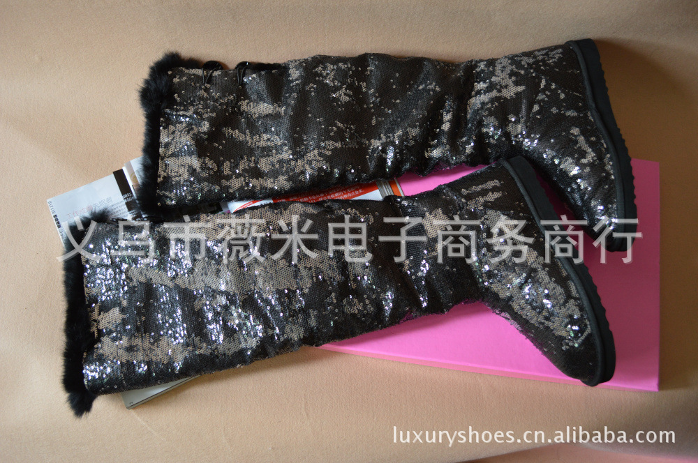 吳佩慈潮鞋個性韓版亮片真兔毛女靴兩穿過膝長筒靴雪地靴 代發(fā)