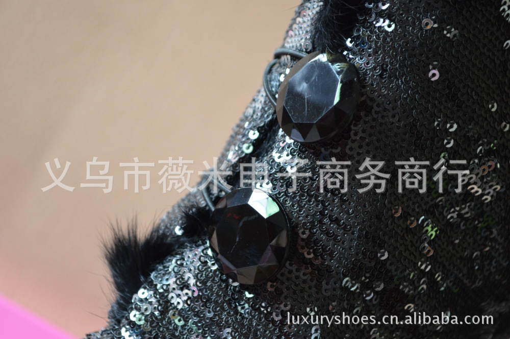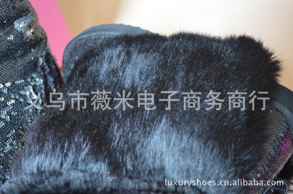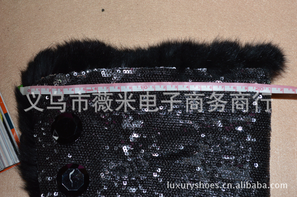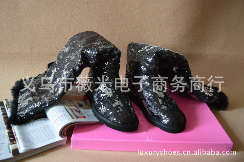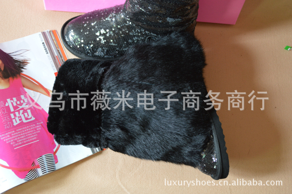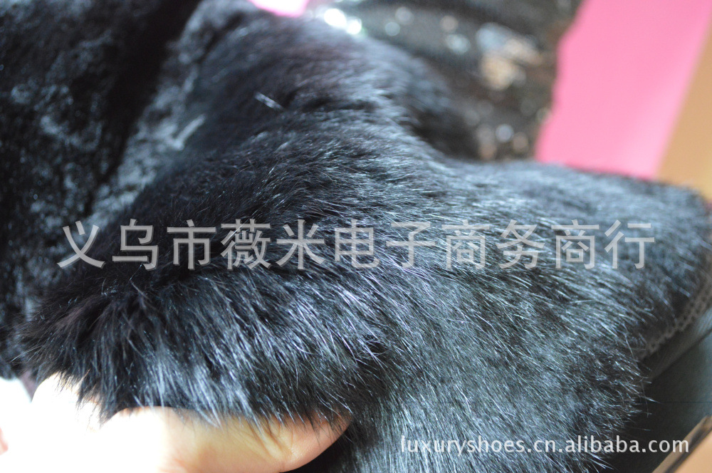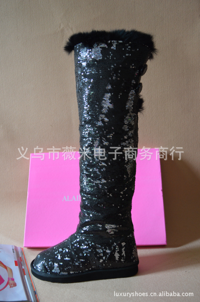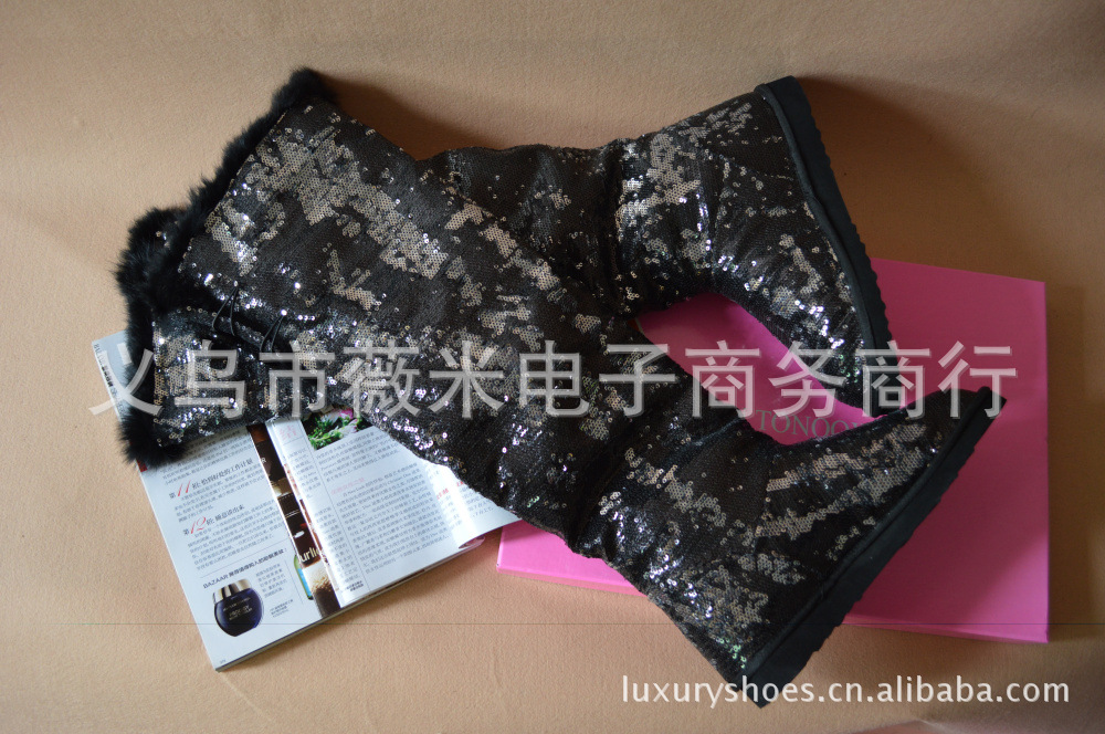 吳佩慈潮鞋個性韓版亮片真兔毛女靴兩穿過膝長筒靴雪地靴 代發(fā)