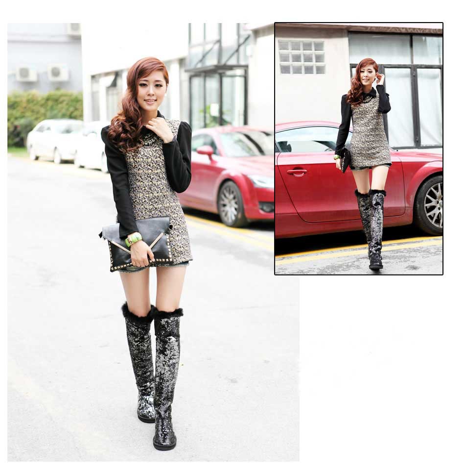 潮牌新款吳佩慈同款2012年亮片過膝高筒長靴