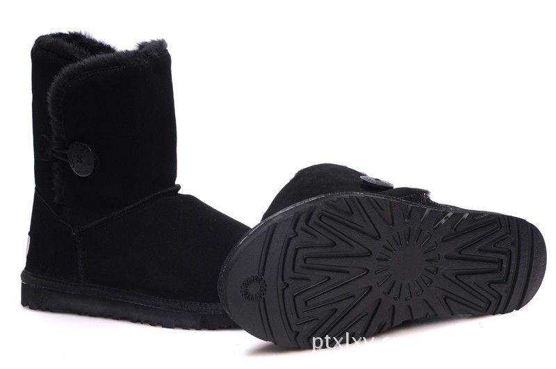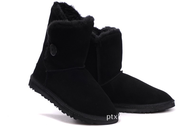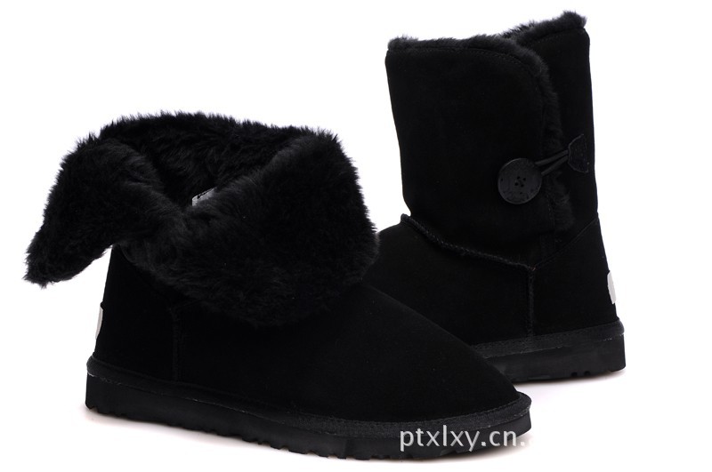 廠家直銷 5803 雪地靴牛皮二層單扣雪地靴 保暖鞋 中筒鞋 黑色