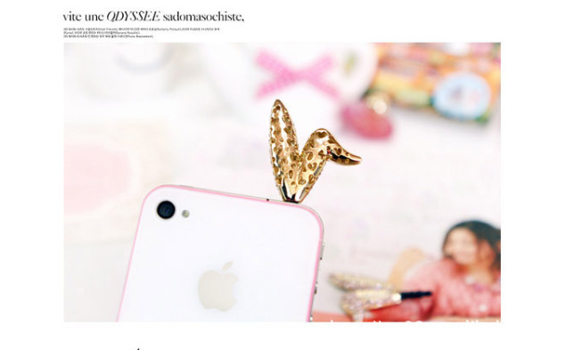 韓國進口可愛鑲鉆水鉆兔子耳朵iphone4s手機塞防塵塞