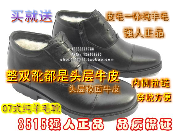 3515強(qiáng)人軍靴皮鞋羊毛男羊毛靴牛皮 07a校尉常服皮鞋 三接頭軍官
