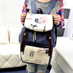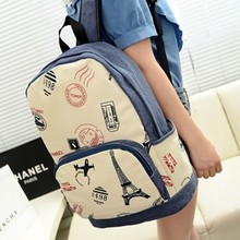 混批英倫學院風鐵塔印花雙肩包背包書包印章印花帆布雙肩包女批發