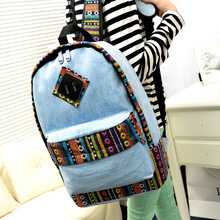 混批新款民族風印染彩色條紋印花雙肩包背包書包印章帆布包女批發