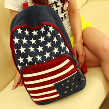 新款英倫五星國旗潮男雙肩包背包書包鉚釘條紋帆布雙肩包女包批發