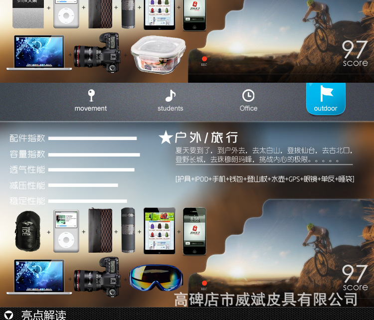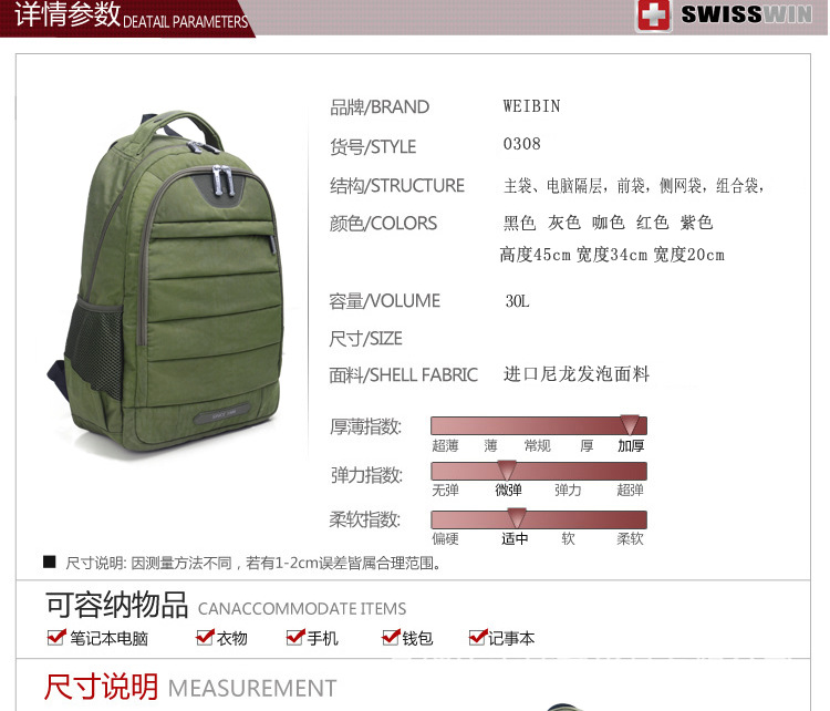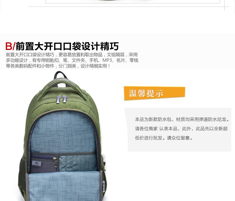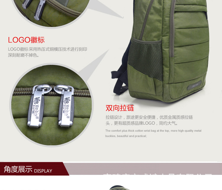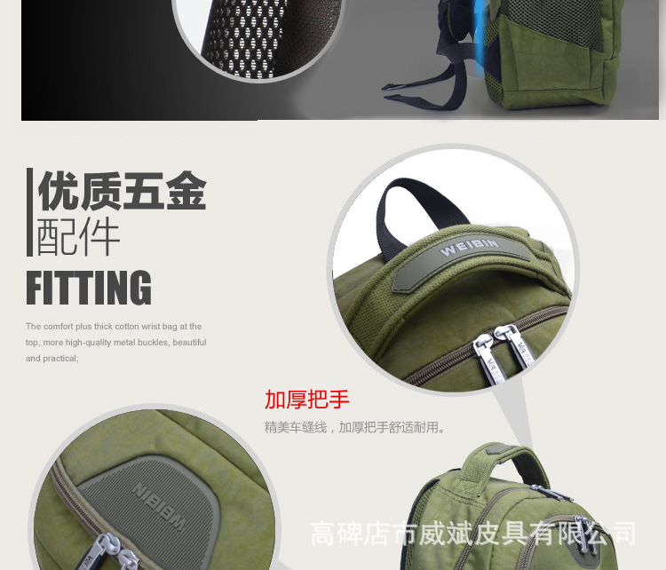 采用尼龍面料,具有防水功能,極其富有質(zhì)感,做工精致,每一個(gè)細(xì)節(jié)都體現(xiàn)了威斌的不凡魅力。豪華精致的做工與設(shè)計(jì)搭配富有品位的您,適合任何場(chǎng)合。威斌箱包極盡奢華之設(shè)計(jì),顯示您尊榮華貴的象征,體現(xiàn)與眾不同的氣質(zhì)!讓您脫穎而出,備受注目!此包包人性化,多功能設(shè)計(jì),讓您帶著輕松愉快的心情工作休閑!