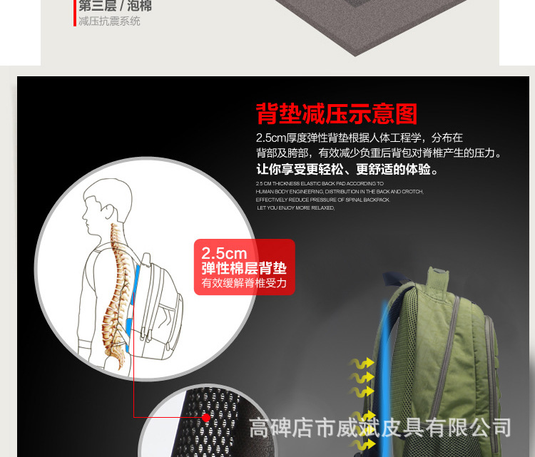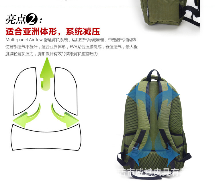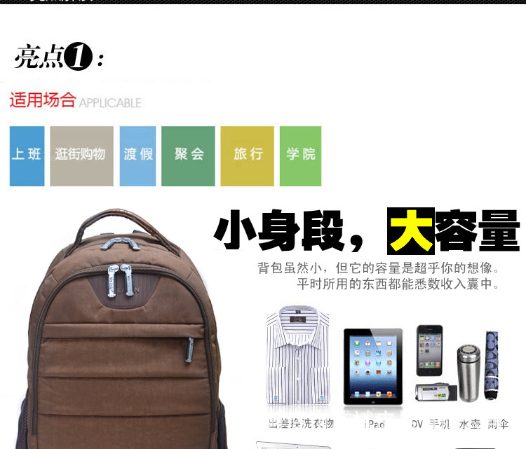 【包包特點(diǎn)】舒適的流水曲線型肩帶,能有效的起到防滑落的作用。厚軟的海綿結(jié)構(gòu)能有效的緩沖外力對(duì)肩部,腰部,尾椎部的壓迫,無(wú)論您是出差,旅行,還是日常背帶電腦或其他物件,都能很好的保護(hù)您的身體及物件不受損傷。肩帶與包身的寬面積自然縫合,完全解決的普通背包肩帶縫合處易于開裂的弊端。