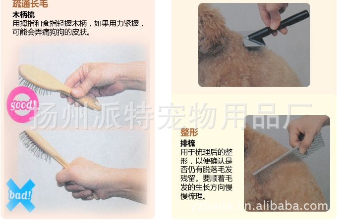 本廠采用全自動多軸植毛機、數控多軸打孔機等先進設備,可生產多規格、多材質、高難度、大批量的各類寵物梳理美容產品。